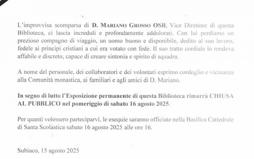 Pauca et rationabilia 18 dicembre 2021 ore 17: Subiaco’s Library 2.0 Modera D. Fabrizio Messina Cicchetti OSB Direttore della Biblioteca. Intervanti di Elena Almangano, Valerio Totino, Isabel Alfano, Daniele Veroli. Musica: Lorenzo Gregori tromba, Francesco